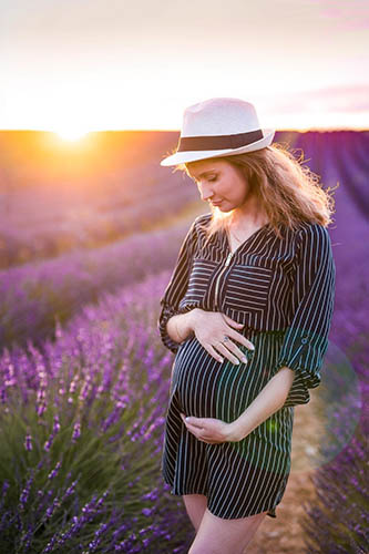 Ein Schwangeren-Fotoshooting kann auch im Freien bei einem wunderschönen Sonnenuntergang stattfinden. Diese traumhaften Babybauchfotos machen das Shooting besonders gelungen!
